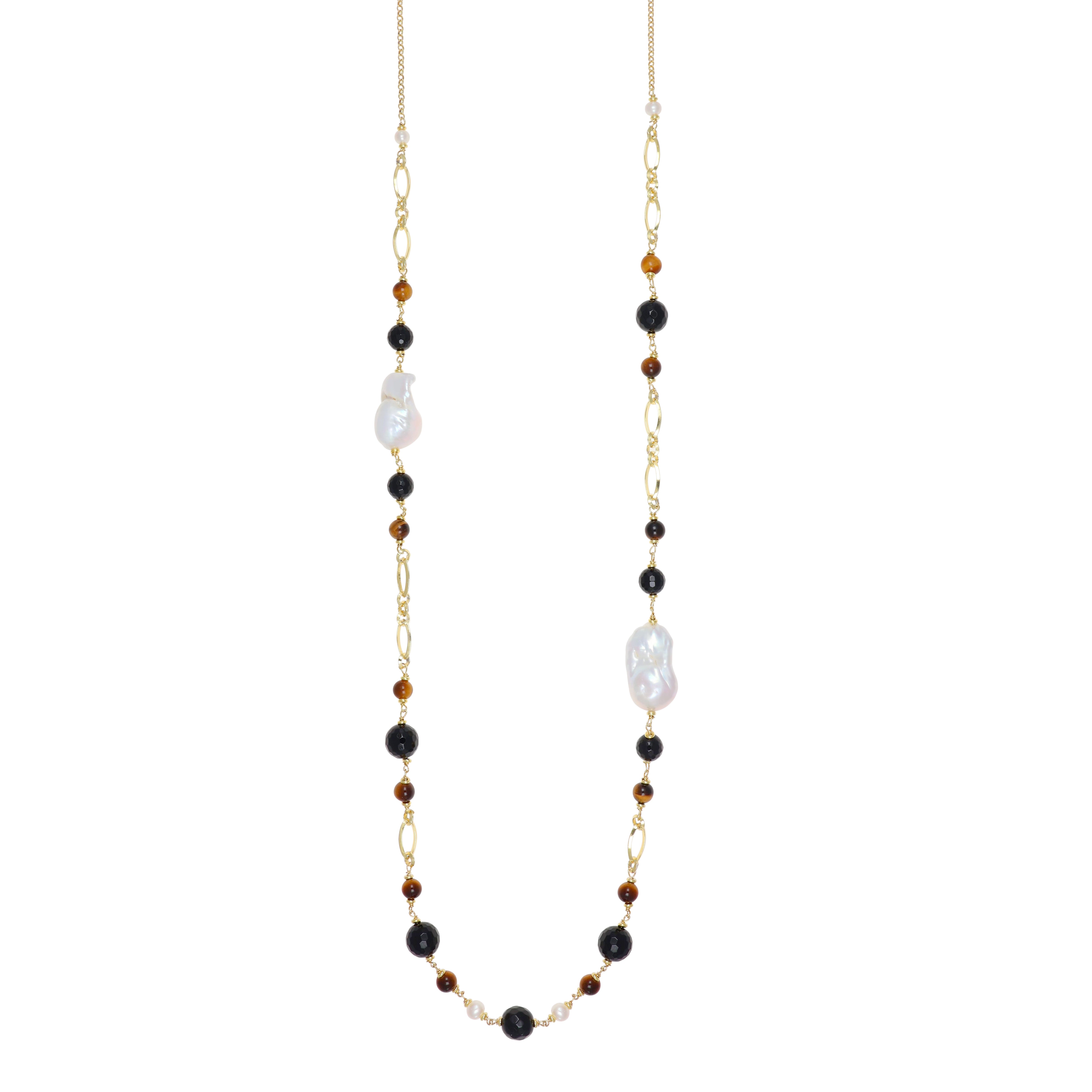 Collana Lunga Onice Occhio di Tigre Perle - Elmira