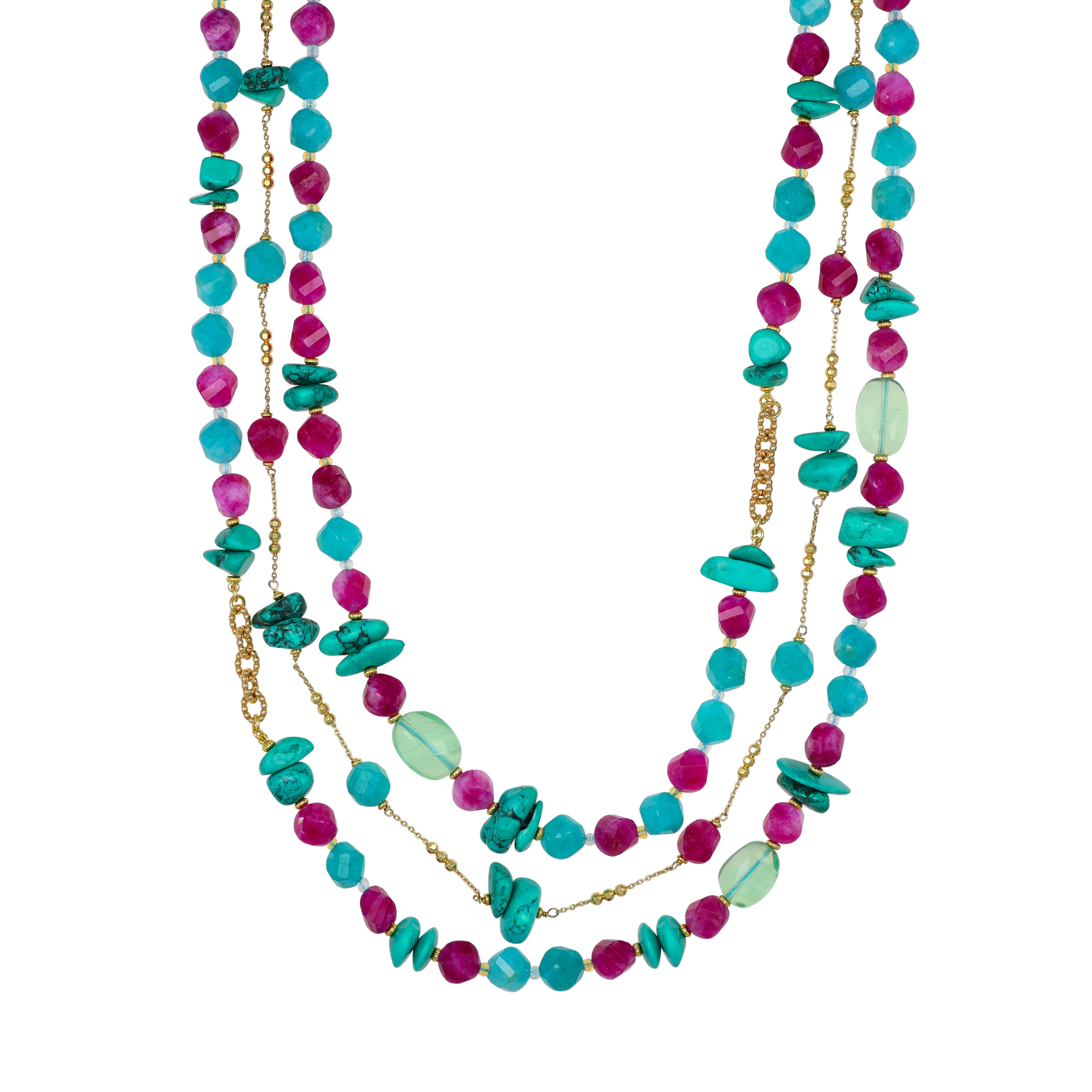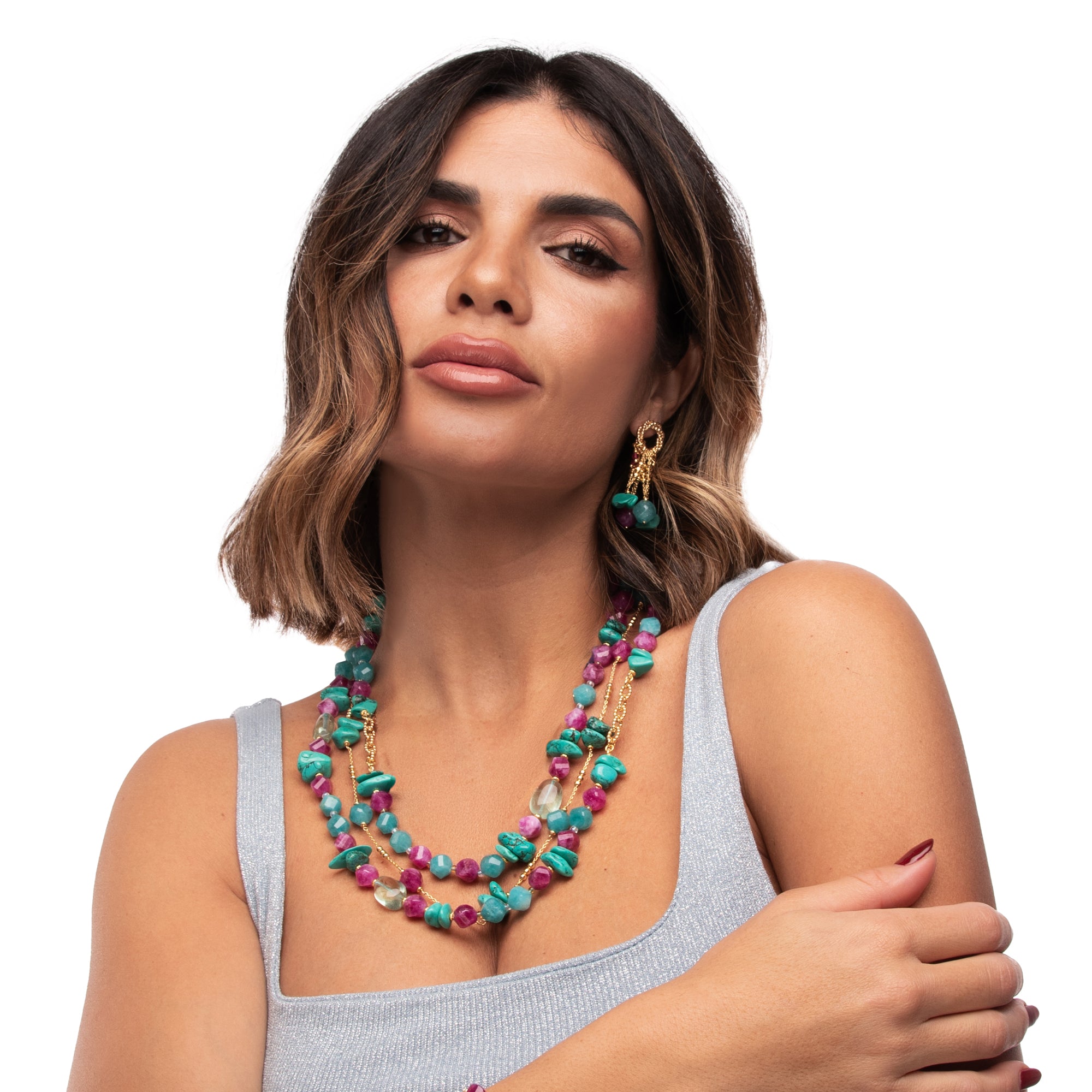 Material: plata 925, amazonita, fluorita y ágata fucsia.