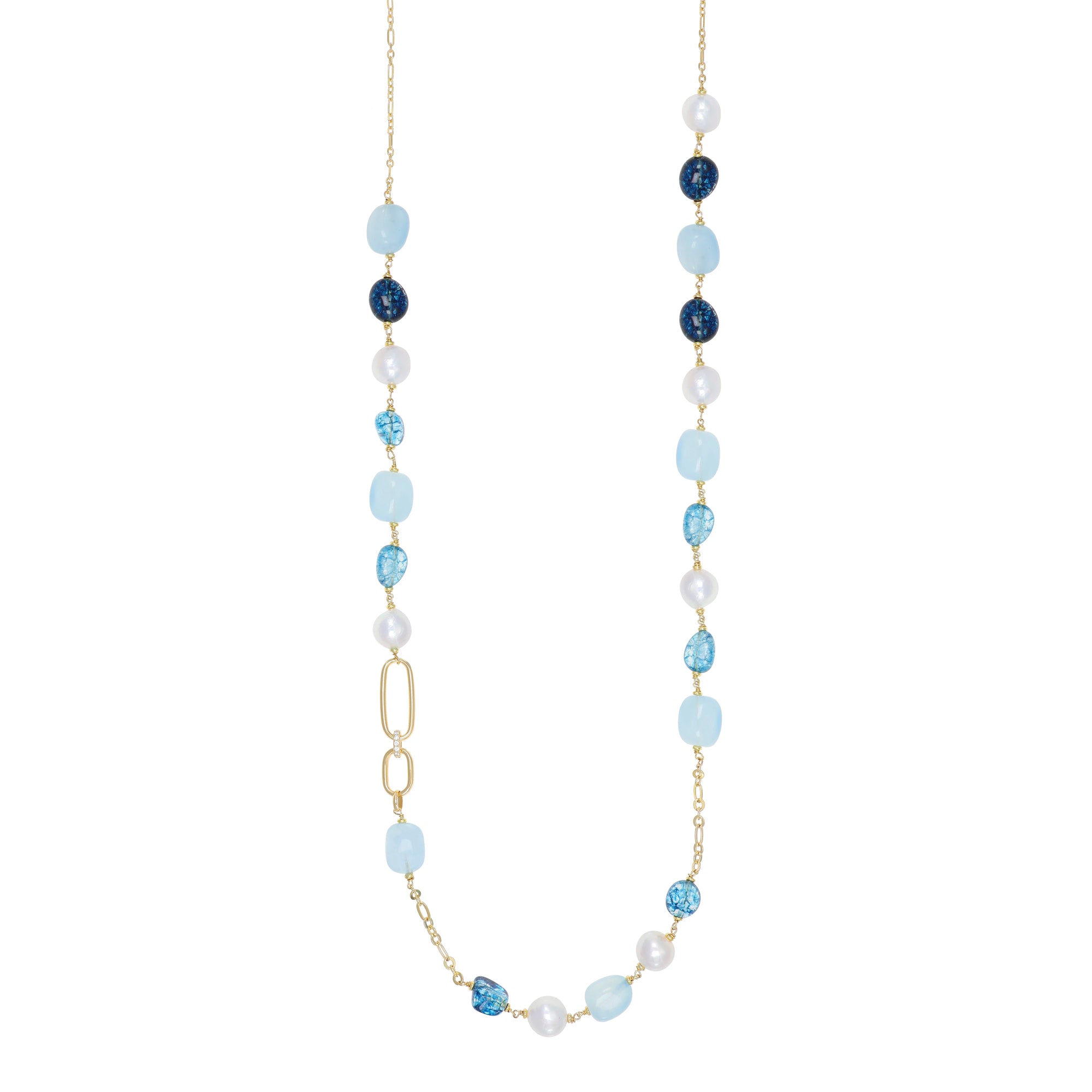Collana lunga con perle e quarzi blu - Denia